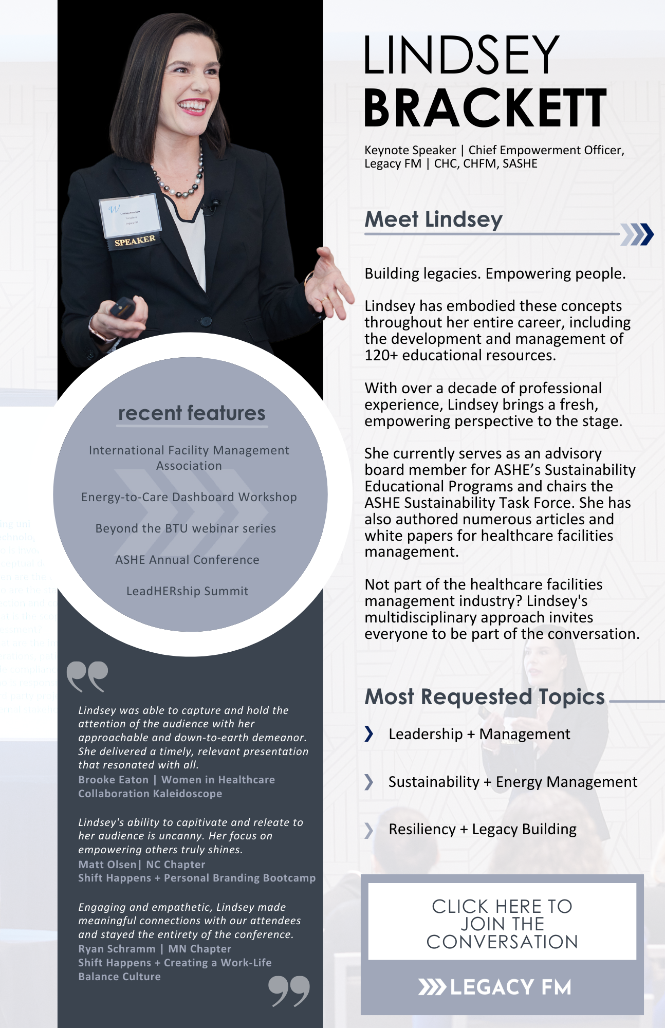 Lindsey Brackett speaks with passion, expertise, and a commitment to empowering professionals.